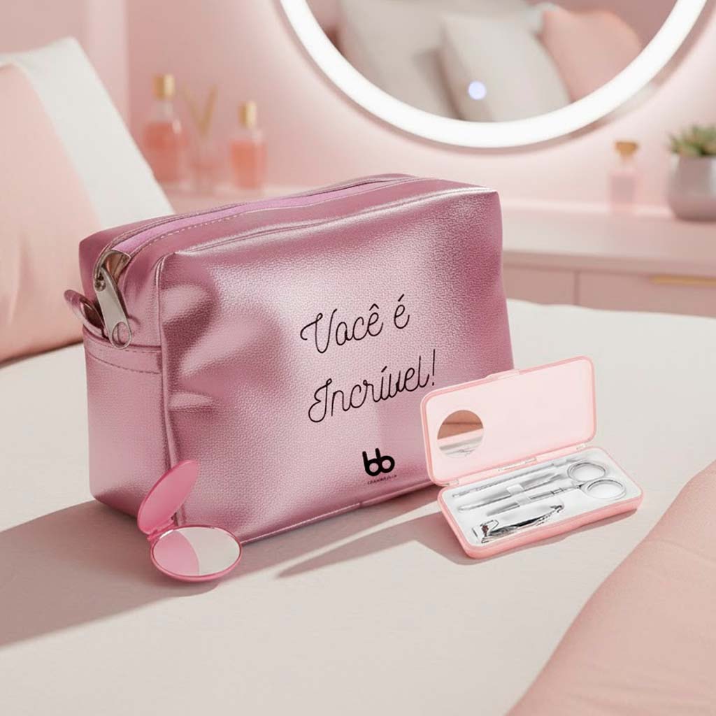 1 Bolsa multiusos em PVC com zíper, disponível em cores metalizadas.