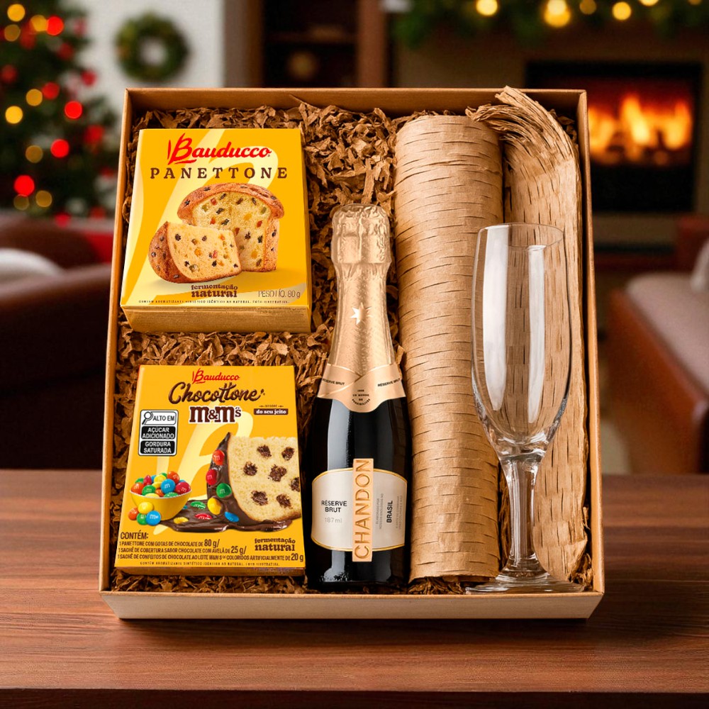 Kit Espumante Chandon com taça, Panetone e Chocottone