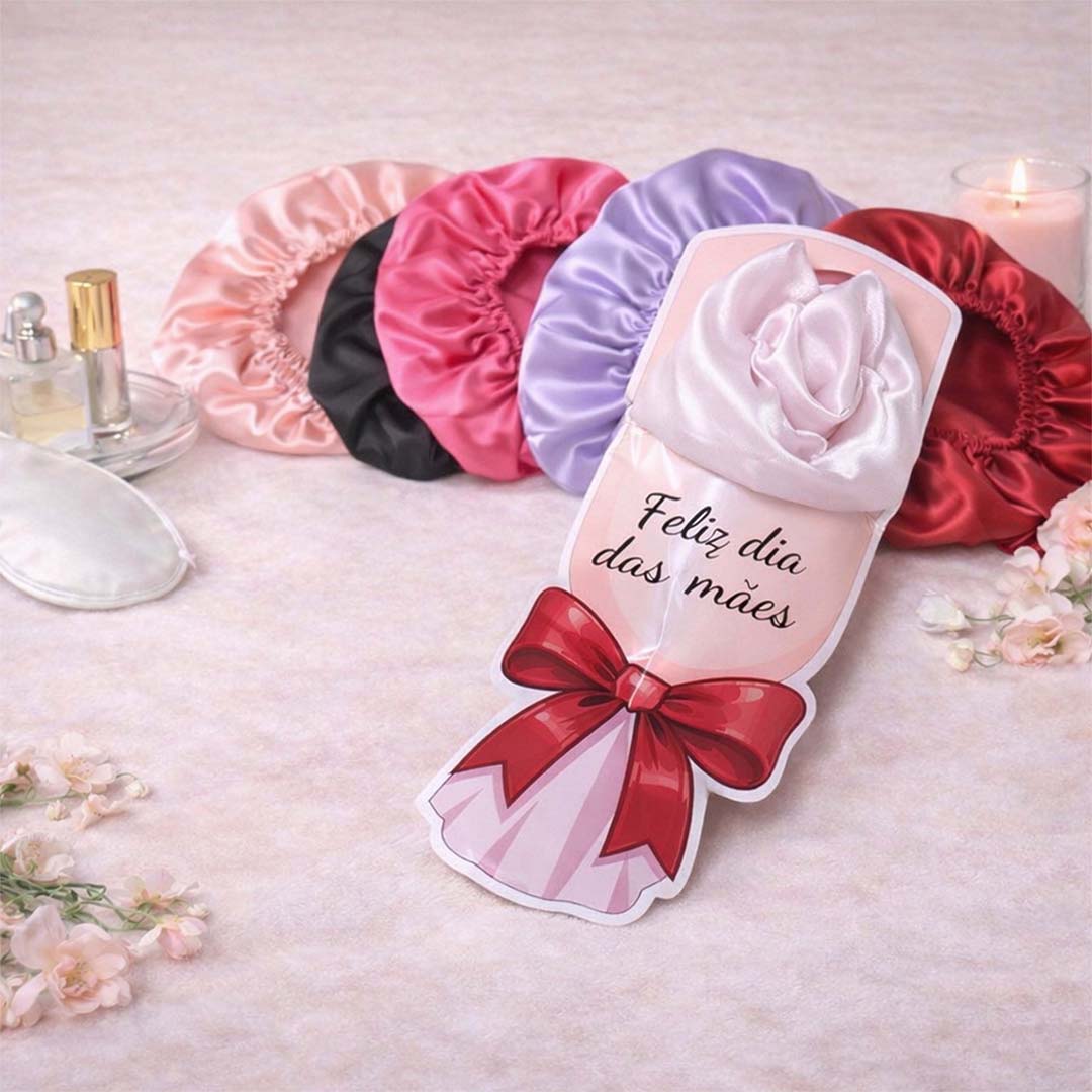 Kit touca de cetim com cartela personalizada