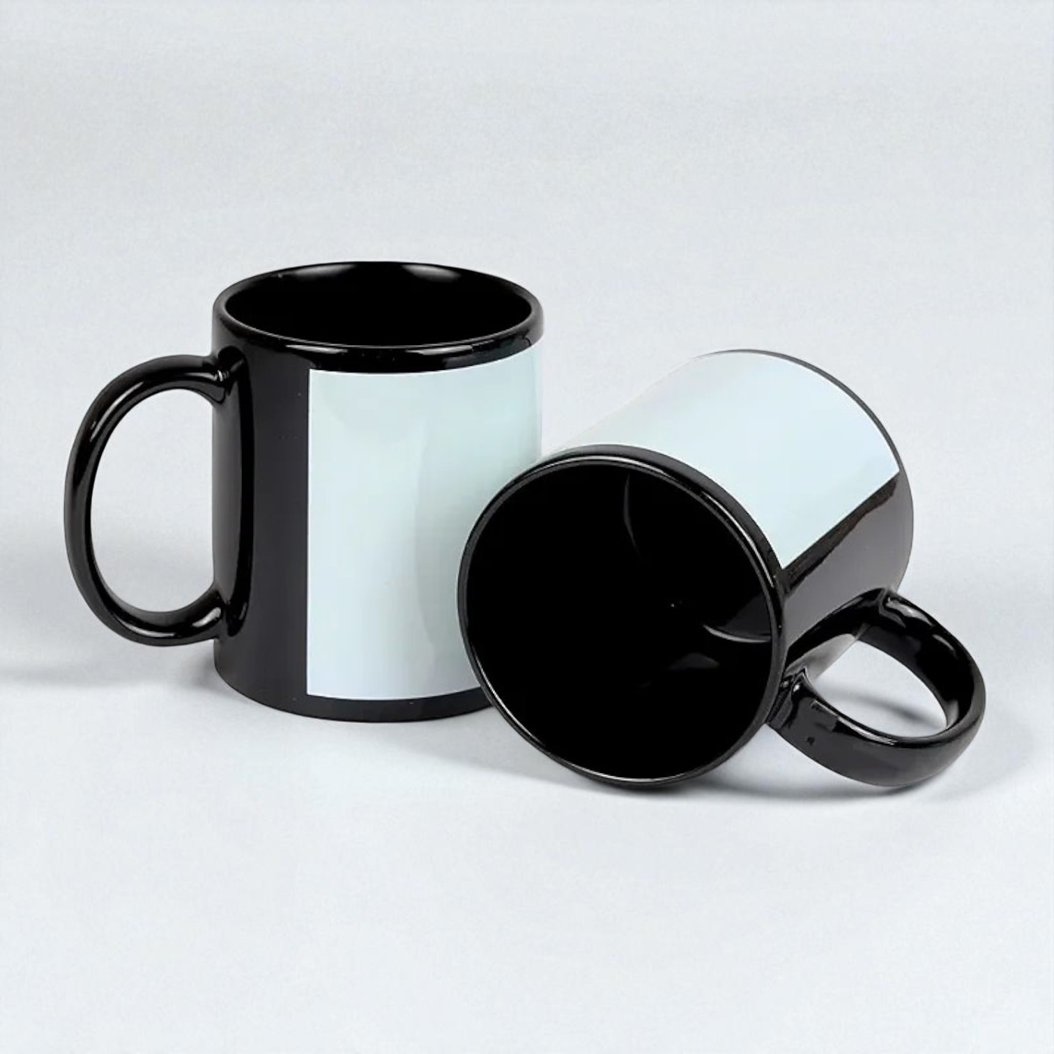 Caneca Cerâmica Preta Tarja Branca 325ml