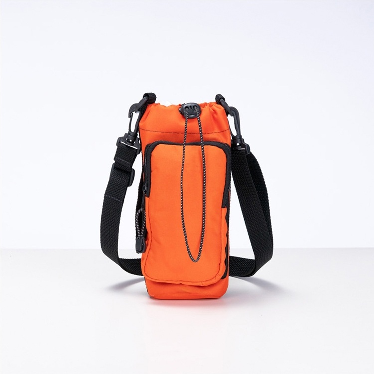 Descrição: Porta-garrafa confeccionado em Oxford resistente à água. Conta com elástico para fechamento, bolso frontal com fechamento em zíper, alça lateral fixa e alça transversal ajustável em nylon.