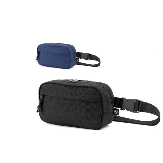 Descrição: Pochete em poliéster reciclado 600D e forro em poliéster reciclado 210D. Possui um compartimento principal e um bolso frontal. 220 x 130 x 70 mm