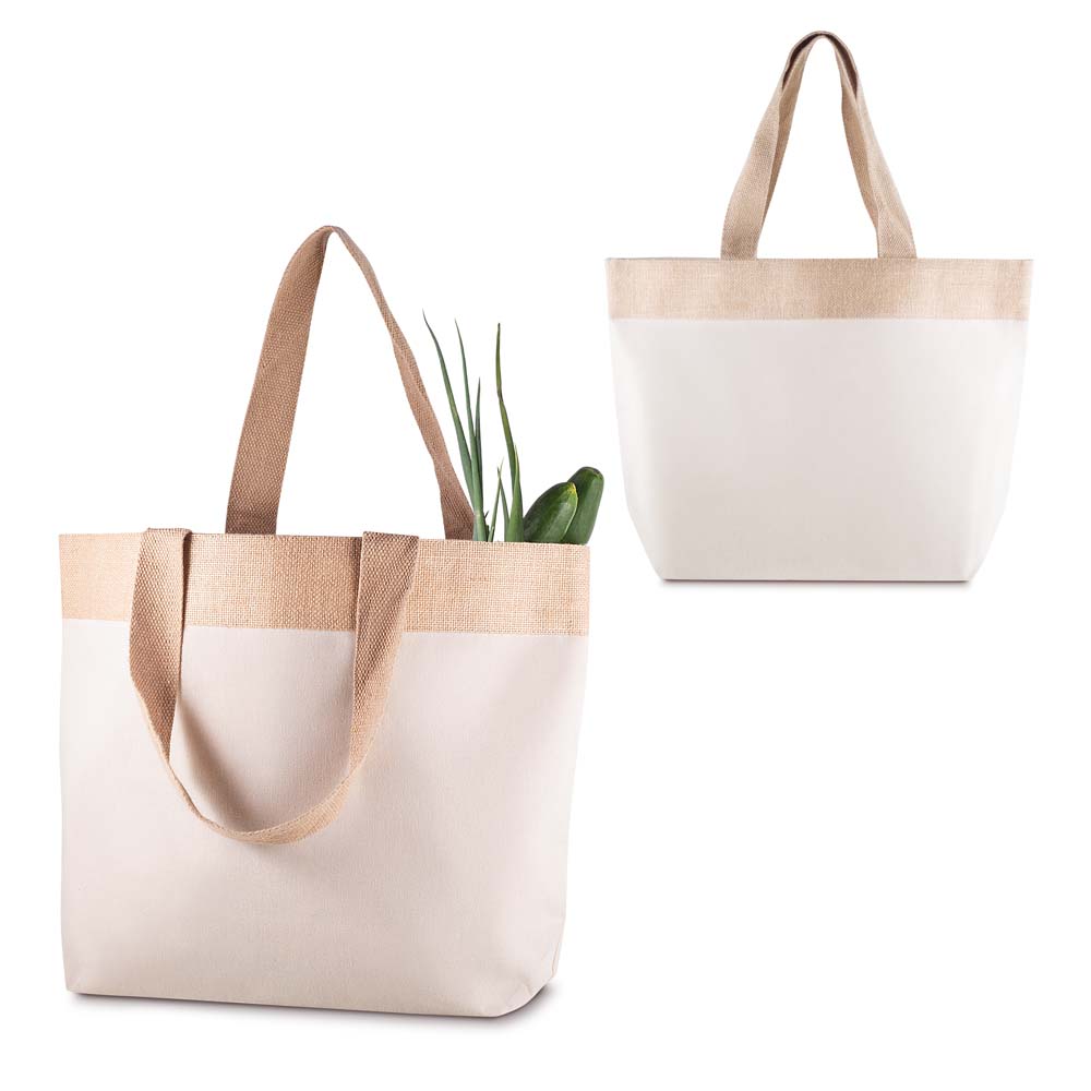 Descrição: Sacola em Algodão Cru 220g/m² com detalhe em Juta.