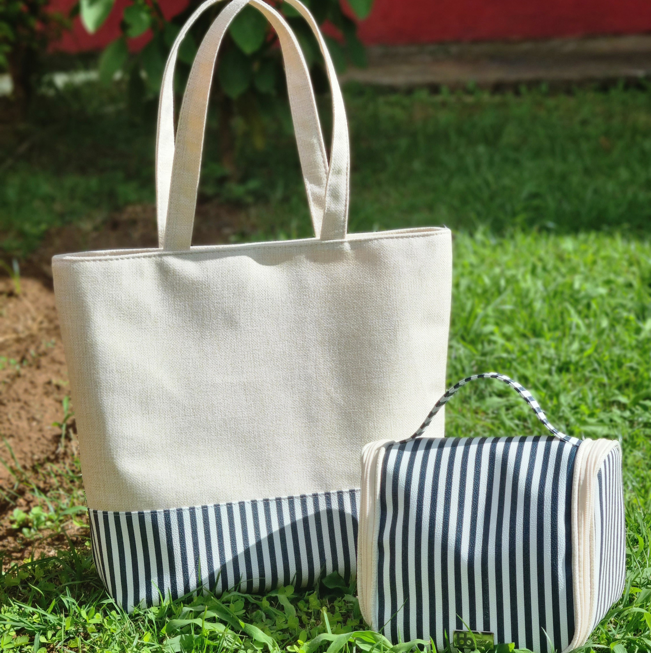 1 NECESSEIRE CABIDEIRA 20X20X12 EM SINTÉTICO LISTRADO COM FORRO E 2 BOLSOS INTERNO DE TELA VÔLEI,