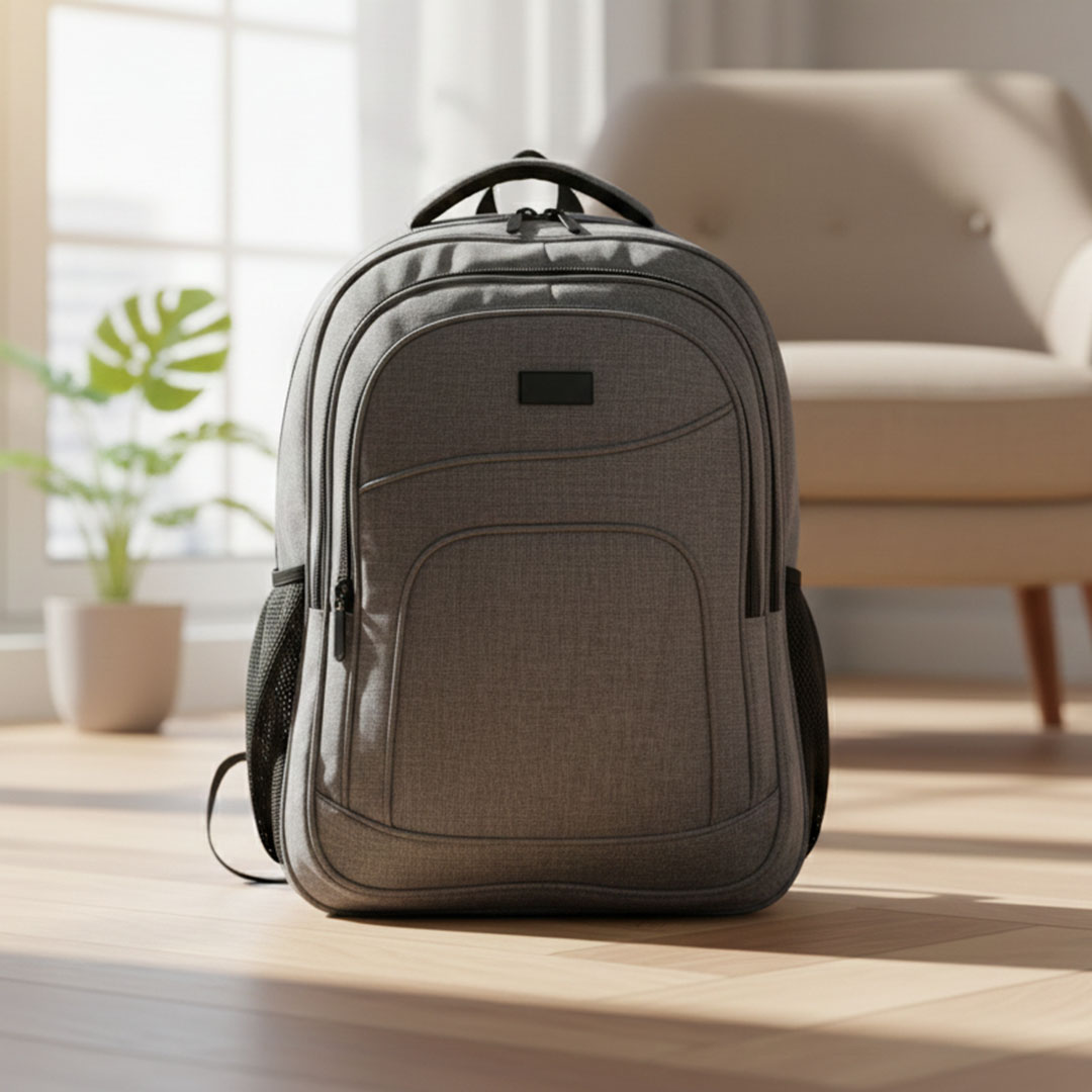 Mochila nylon 30 litros com porta notebook 15,6′, 3 compartimentos e bolsos laterais telados.