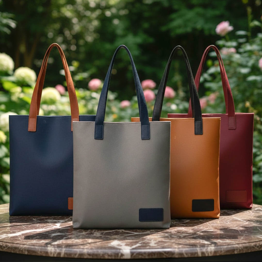 Sacola em nylon 600, com alça de fita CA 30mm com plaquinha em sintético bidim.