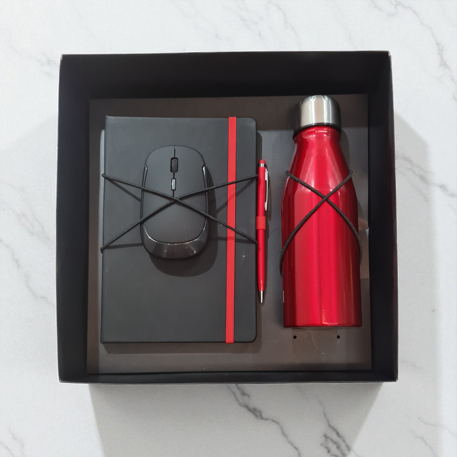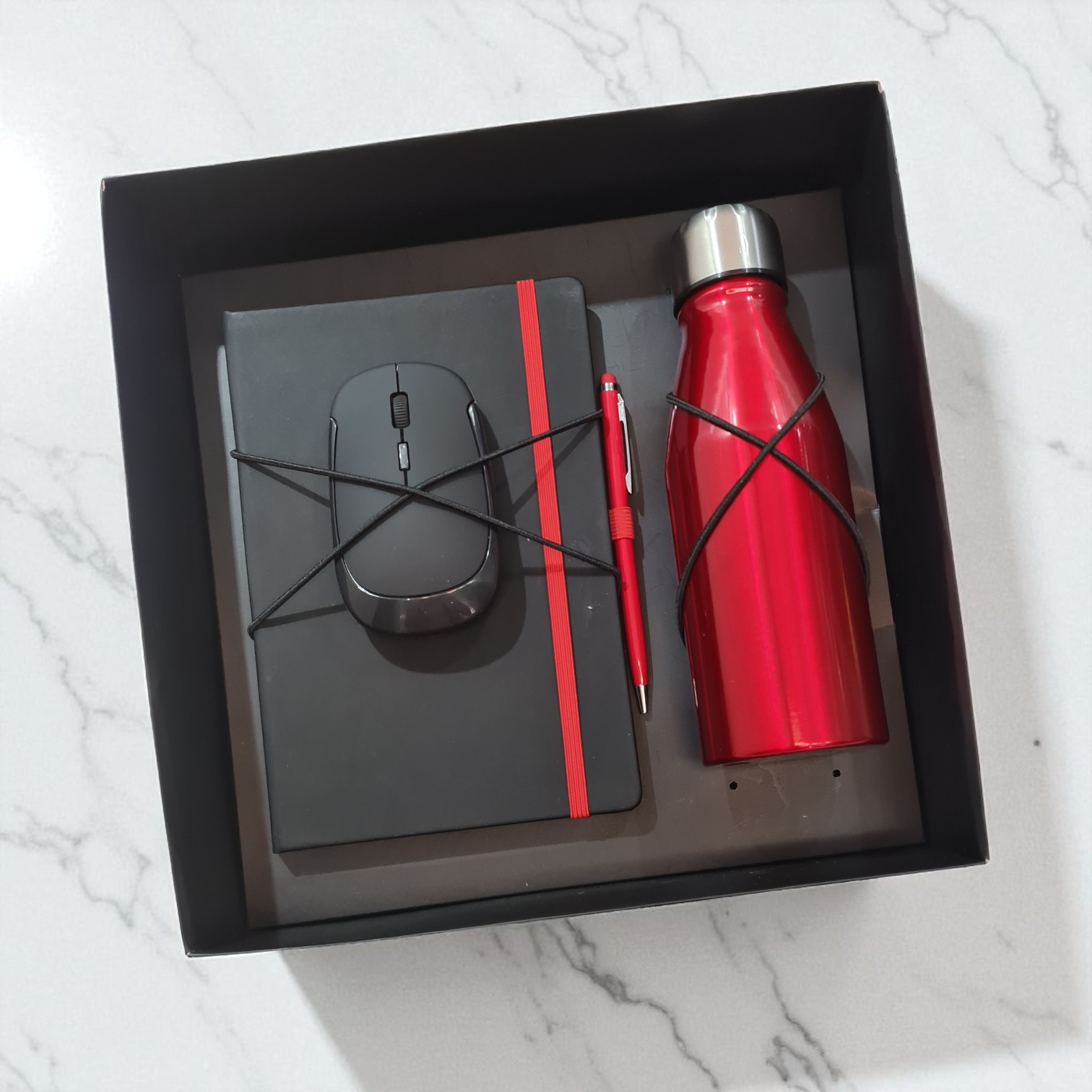 Kit Empresa Bem Vindos Bloco A5, Caneta Metal touch, Squeeze  Alumínio 500ml e Mouse Sem Fio.