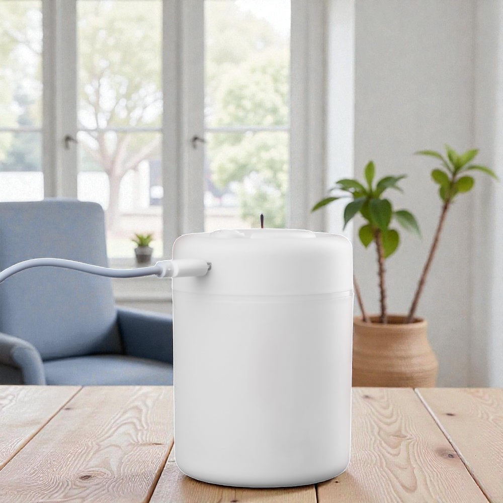 Umidificador de ar com difusor de óleo essencial via USB. Com capacidade 180ml, LED Lâmpada noturna para uso em carro, escritório ou em casa. Acompanha cabo USB.